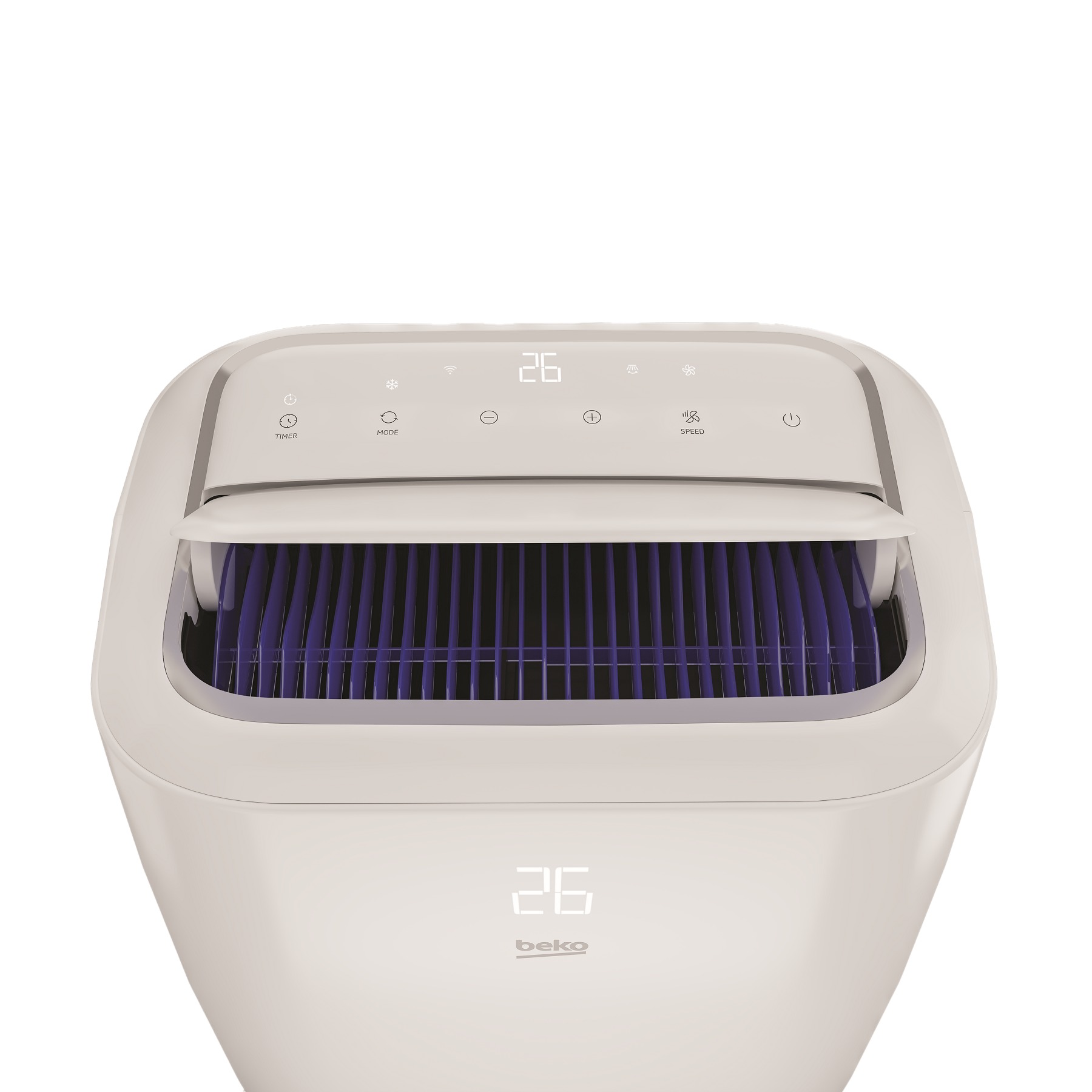 BEKO klimu iz Apeksa odlikuju: Kapacitet hlađenja od 2,6 kW s energetskom učinkovitošću klase A. Protok zraka od 380 m³/h, uz tri brzine ventilatora i automatsko usmjeravanje zraka gore–dolje za optimalnu raspodjelu osvježavajućeg zraka. Jednostavno upravljanje putem LCD daljinskog upravljača i LED zaslona bijele boje.