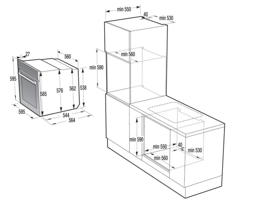 - Min. dubina veličine niše za ugradnju: 550 mm