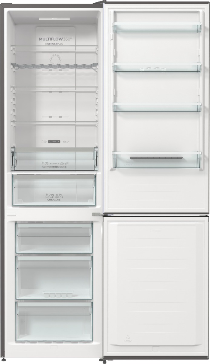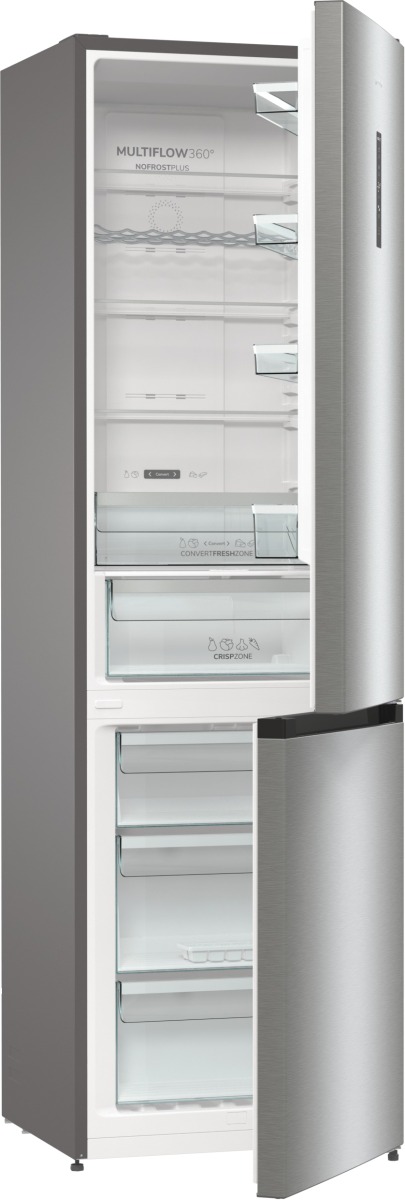 Gorenje hladnjak iz Apeksa odlikuju: elegantna metalik siva boja koja se savršeno uklapa u suvremene kuhinje. S ukupnim kapacitetom od 331 litru (235 l hladnjak, 96 l zamrzivač), idealan je za obiteljske potrebe. Staklene police koje su istovremeno čvrste i elegantne, s dodatkom praktične ladice za voće i povrće (CrispZone) koja čuva svježinu namirnica zahvaljujući mogućnosti podešavanja razine vlažnosti. Ventilacijski sustav MultiFlow 360° ravnomjerno raspoređuje zrak, održavajući optimalnu temperaturu i svježinu namirnica. NoFrost Plus tehnologija koja sprječava nakupljanje leda, eliminirajući potrebu za ručnim odleđivanjem. Funkcija FastFreeze zamrzava hranu na -24 °C kako bi se sačuvali minerali i kvaliteta namirnica. Energetski razred D i razina buke od 38 dB osiguravaju učinkovitu i tihu upotrebu.