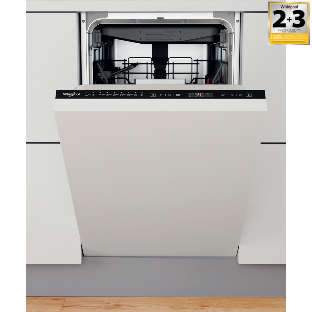 Ova Whirlpool ugradbena perilica posuđa iz Apeksa svojim funkcijama osigurava uvijek čisto i suho posuđe. Najtvrdokornija prljavština je uklonjena uz uštedu vremena i resursa. Napredne tehnologije ove perilice posuđa su: 6th Sense tehnologija sa senzorima koji će otkrit veličinu opterećenja i razinu zaprljanosti kako bi se u skladu s tim prilagodila temperatura, vrijeme i snaga ciklusa pranja, s naglaskom na uštedu uz najbolje rezultate pranja. PowerC lean Pro njezine posebne mlaznice usmjeravaju vodu s velikom preciznošću, kako bi se riješili čak i najupornije prljavštine i zagorene hrane. Sistem sušenja – Statički. Ostale karakteristike ove perilice posuđa su:treća košara – fiksna, broj setova – 10, potrošnja vode 9 L, energetski razred – E, razina buke (dB(A)) 43 sustav zaštite od izlijevanja, vrsta zaslona – 7- Segment / 1-24 h, boja – crna, broj košara – 3, prilagodljiva gornja košara, Performanse pranja – A, Multizone, Light on floor, broj programa – 9, pomična gornja košara, indikator sredstva za ispiranje – mehanički, indikator soli – elektronski, broj i tip prskalica – 2 plastična injektora, opcija odgode starta, svjetlosni indikator količine tekućine za ispiranje, pranje u jednoj košari – gornja ili donja, Program za staklo, Samočišćenje, silent opcija, broj različitih temperatura pranja – 3, visina proizvoda – 820mm x širina proizvoda – 448mm x dubina proizvoda – 555mm